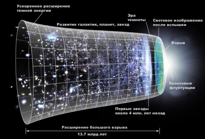 Наглядная инфографика развития Вселенной впоследствии большого взрыва.