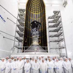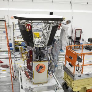 Parker Solar Probe внутри головного обтекателя ракеты Delta IV Heavy. Источник: NASA/Chris B — NSF
