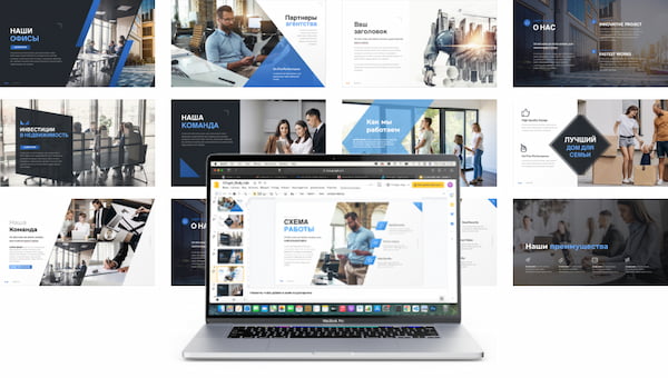 Качественные фотографии и изображения команды, продуктов и офиса придают презентации личность. Это помогает создать более теплую и доверительную атмосферу, что особенно важно, если вы представляете свой бренд.