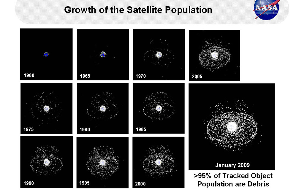 По данным Сети космических наблюдений США, в настоящее время на околоземной орбите находится около 40 тыс. отслеживаемых объектов. Абсолютное большинство из них представляет собой космический мусор. Это отработавшие свое спутники, верхние ступени ракет, разгонные блоки, обломки, образовавшиеся в результате взрывов космических аппаратов, столкновений и испытаний противоспутникового оружия, и даже потерянные космонавтами инструменты. Общая масса этой мусорной популяции оценивается в 7600 т.
