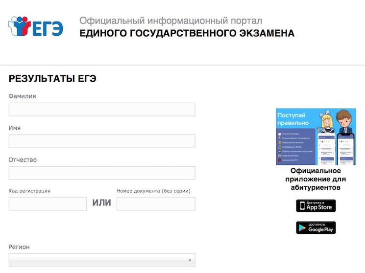 Узнать результаты просто – нужно ввести код регистрации ЕГЭ или ФИО и паспортные данные учащегося.