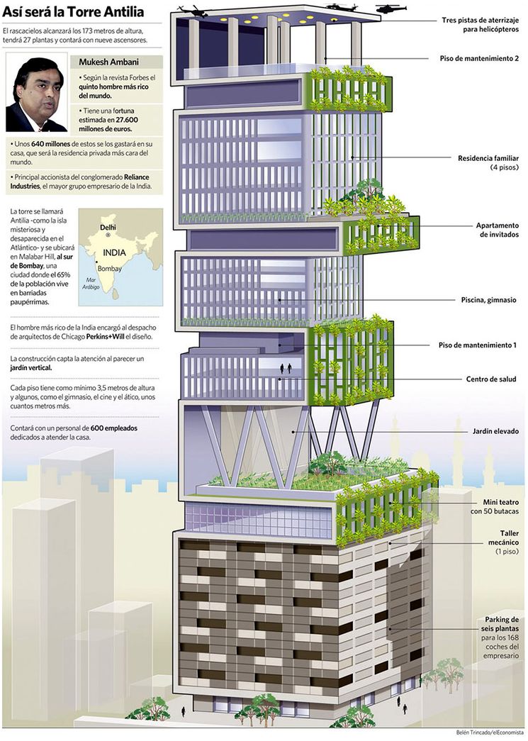 - Особняк-небоскреб Antilia ценой от 1 до 2 миллиардов долларов