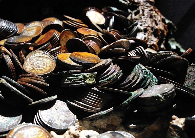 А вот совсем недавно энтузиасты из «Deep Ocean Search» (спецификой которой является поиск сокровищ в морских глубинах) установили рекорд и осуществили самую экстремальную поисковую операцию в истории кладоискательства. Она ознаменовалась спуском на глубину в 5 км и поднятием со дна Атлантического океана ста тонн монет из чистого серебра, неподалеку от острова Святой Елены.