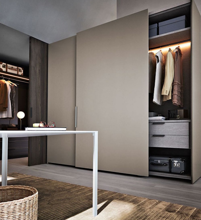 - Раздвижные двери: Экономия пространства и современный вид, например, шкафы-купе WARM от Lema.