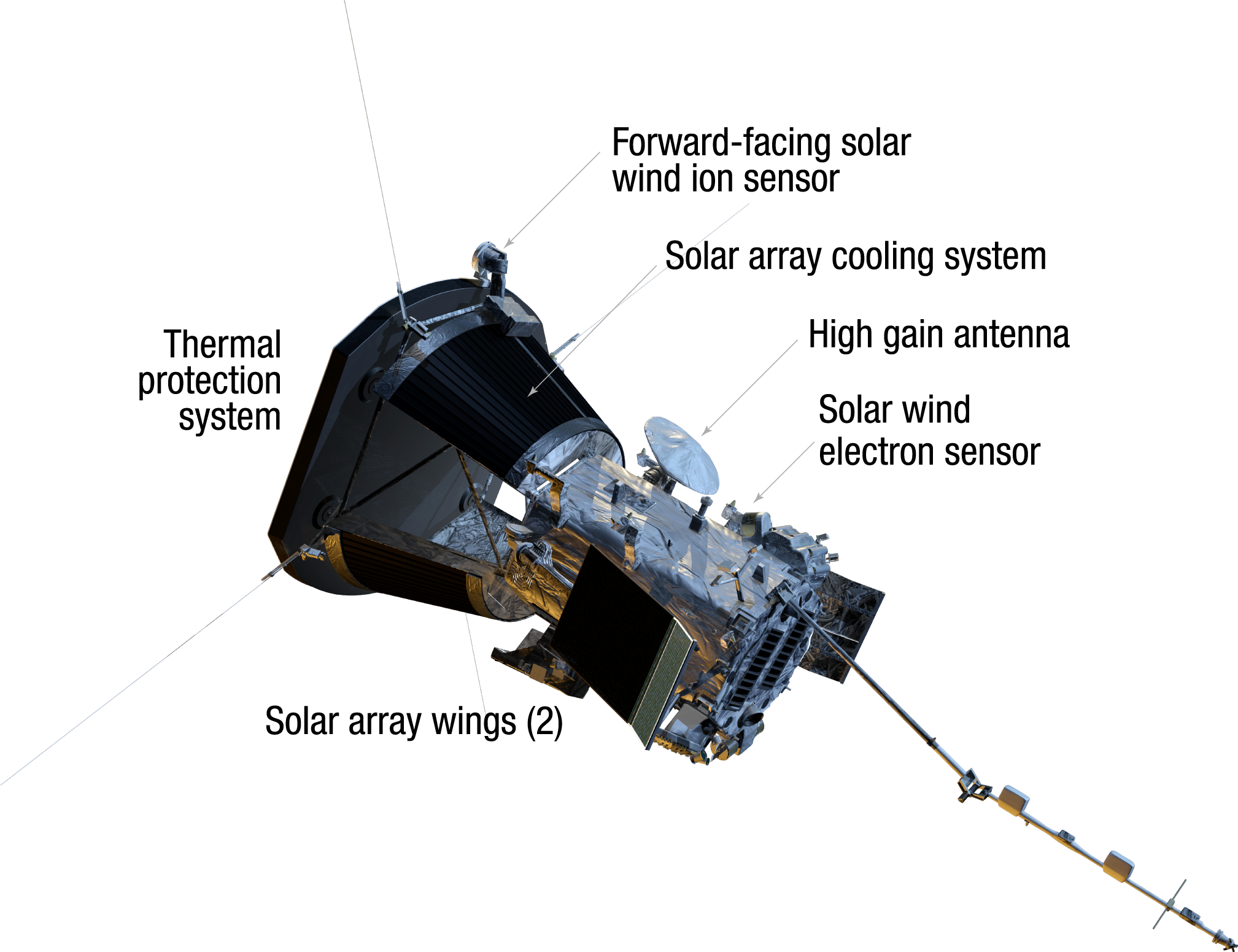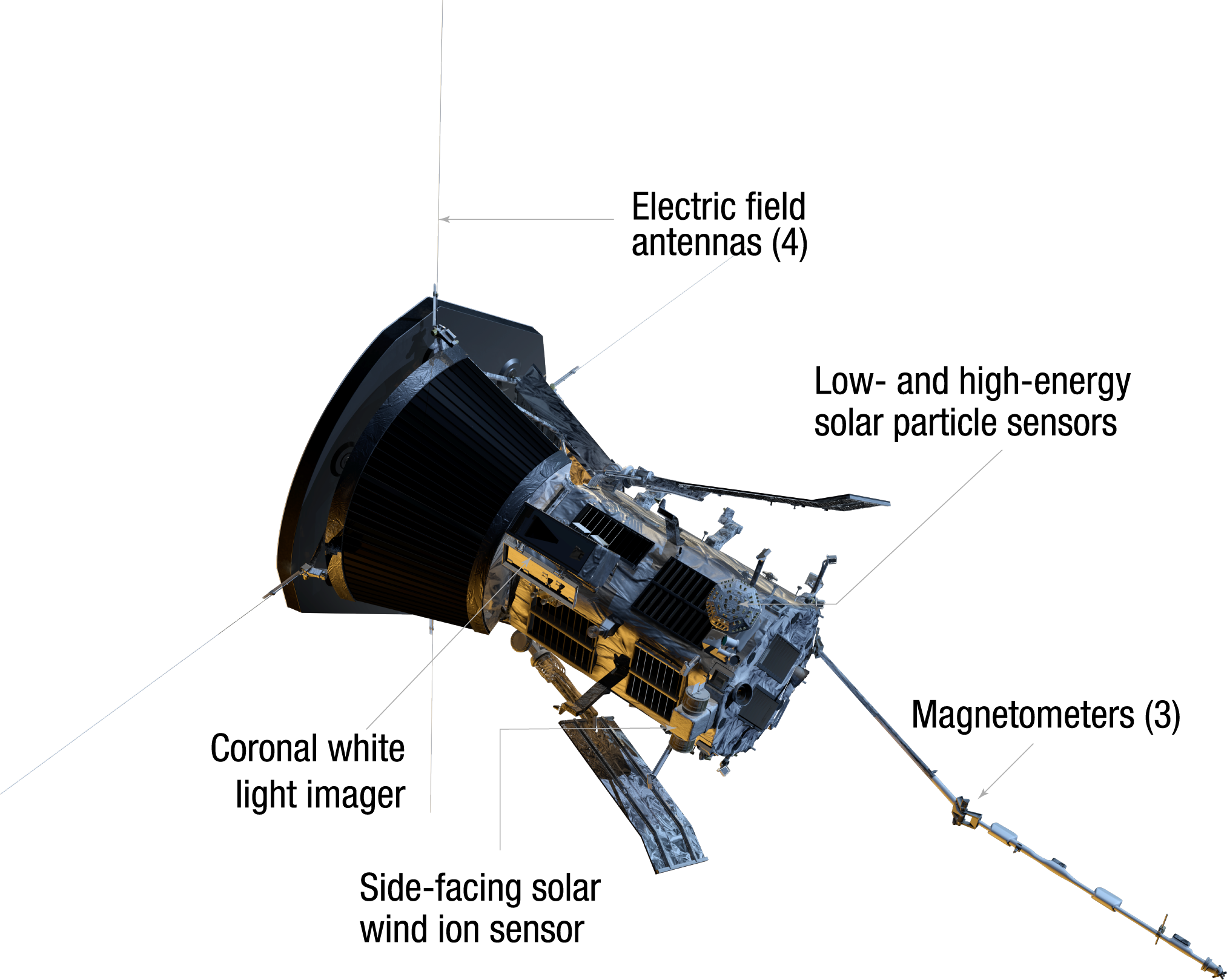 На борту PSP будут размещаться приборы для измерения скорости и направления движения заряженных частиц солнечного ветра, изучения солнечной плазмы и магнитных полей. Также зонд оснастят телескопом, предназначенным для получения прямых изображений солнечной короны и внутренних структур гелиосферы. Чтобы защититься от излучения нашей звезды, интенсивность которого на пике будет в 520 раз выше, чем на околоземной орбите, аппарат прикроют композитным теплозащитным экраном толщиной 11,5 см, способным выдержать температуру в 1500°C.