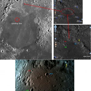 Израильская некоммерческая организация SpaceIL опубликовала последнее изображение, переданное зондом «Берешит». Оно было сделано 11 апреля в тот момент, когда аппарат находился на высоте 15 км над северо-восточной частью Моря Ясности. Вскоре после этого у аппарата отключился посадочный двигатель, и он врезался в лунную поверхность.