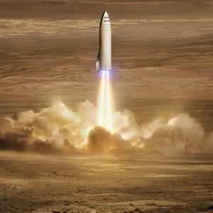Взлет Starship с Марса (концепт). Источник: SpaceX