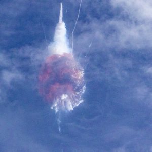 Что касается Falcon 9, то ее первая ступень после прекращения работы была подорвана по команде наземным оператором. Вторая ступень перед взрывом успела отделиться от ракеты и разбилась при падении на поверхность воды.