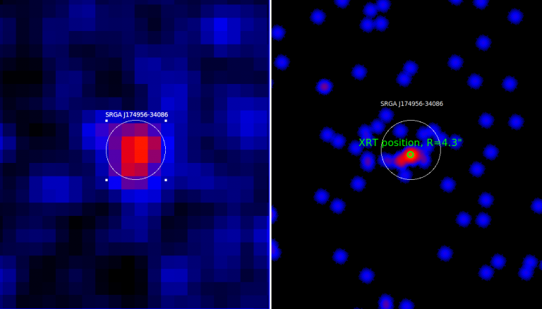 После выполнения серии калибровок российский телескоп ART-XC, установленный на борту орбитальной обсерватории «Спектр-РГ», приступил к выполнению своей научной программы. Во время первого сканирования балджа (центрального сгущения) Млечного Пути он открыл новый рентгеновский источник. Объект получил обозначение SRGA J174956-34086.