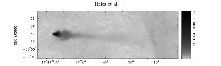 Кроме того, телескопу «Спектр-РГ» также удалось запечатлеть визуально близкую к этой паре туманность «Мышка» (PWN G359.23−0.82). Она получила свое название из-за длинного хвоста, хорошо различимого в радиодиапазоне. Такие объекты относятся к классу плерионов — туманностей, подпитываемых веществом, которое выбрасывают расположенные в их центрах пульсары.