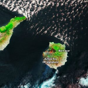 В августе на испанском острове Гран-Канария начались беспрецедентные по силе лесные пожары. Они были вызваны комбинацией нескольких факторов — высокой температуры, низкой влажности и сильных ветров. По сообщениям очевидцев, высота языков пламени достигала 50 м.