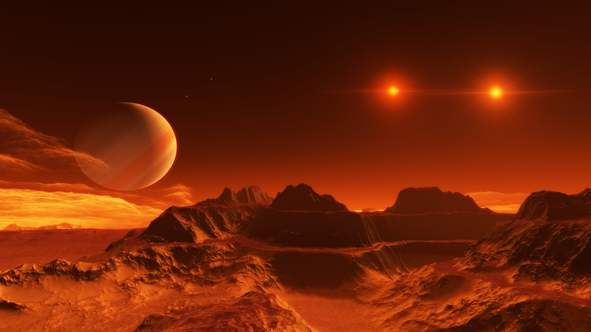 Вид с поверхности экзолуны в системе двух красных карликов в представлении художника. Источник: u/chalkchick0