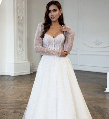 Это платья с облегающим верхом и расклешенным низом. Такой фасон способен придать образу невесты утонченности, изысканности. Платье может скрыть небольшую полноту, подчеркнуть талию, визуально увеличить бюст, сделать невесту более стройной.