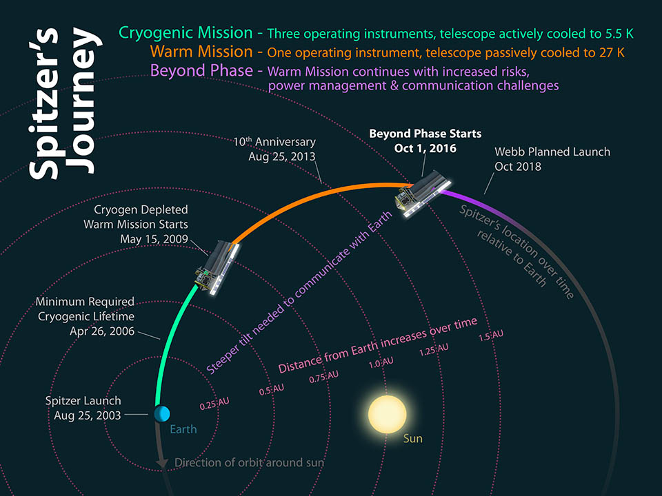 28 января 2020 г. инфракрасный телескоп Spitzer передал на Землю последний пакет научных данных. После этого контроллеры приступили к постепенному отключению всех систем космического аппарата. 31 января его миссия будет официально завершена.