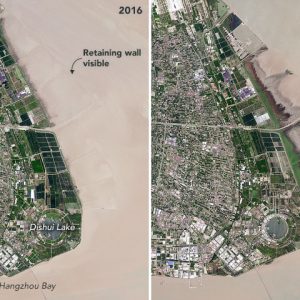 Снимки, сделанные спутником Landsat 8 в 2016 и 2019 г., демонстрируют масштабы этого процесса. Всего за три года китайские инженеры осушили значительную часть прибрежных участков в дельте Янцзы. Часть из этих земель впоследствии будет использована для застройки, часть станет парками и местами отдыха.