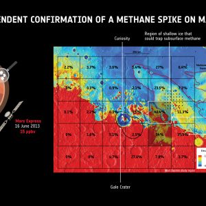 Mars Express выполнил измерения спустя всего пять часов после всплеска, отмеченного приборами Curiosity. Тем не менее, европейскому аппарату метан обнаружить не удалось. Анализ данных, собранных за предыдущий день (18 июня), также не продемонстрировал никаких следов этого газа, хотя инструменты зонда позволяют обнаружить его концентрацию на уровне не ниже 2 ppbv.