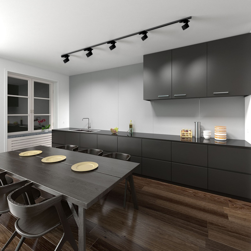 Трековые светильники представляют собой систему из шинопровода и подвижных модулей, которые можно направлять в разные стороны. Они удобны как для бытового, так и для коммерческого использования. Такой вариант позволяет создать динамичное освещение, легко адаптируемое под нужды пространства.