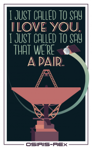 У команды миссии OSIRIS-REx есть одна интересная традиция. Ежегодно перед днем святого Валентина она публикует подборку постеров, посвященных этому празднику. Текущий год не стал исключением. В преддверии 14 февраля на официальном сайте миссии была выложена новая серия изображений, обыгрывающих в романтическом стиле различные ее аспекты — от звездной навигации до сети дальней космической связи NASA.
