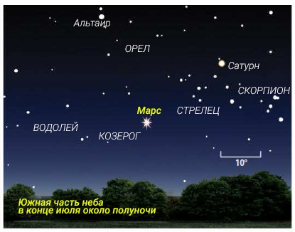 Южная часть неба в конце июля около полуночи. Источник: Sky&Telescope 7/2018