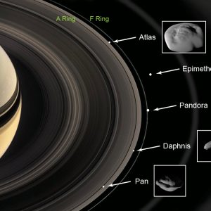 Несмотря на то, что с момента завершения миссии Cassini прошло уже более полутора лет, анализ собранных ею данных продолжает преподносить новые сюрпризы. В недавнем выпуске журнала Science была опубликована статья, посвященная группе небольших спутников Сатурна, орбиты которых проходят внутри или в непосредственной близости от внешнего края колец газового гиганта. Речь идет о лунах Пан, Атлас, Дафнис, Пандора и Эпиметей.