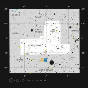 Разнообразие возможных форм подобных структур можно заметить, если сравнить Sh2-296 и видимое прямо под ним более компактное облако Sh2-292 («голова чайки»). Его наиболее заметная деталь — огромная и исключительно яркая звезда HD 53367 («глаз чайки»), в 20 раз превышающая по массе Солнце. Sh2-292 является одновременно и эмиссионной, и отражательной туманностью. Большая часть ее света излучается ионизованным газом, окружающим новорожденные светила, но существенную долю составляет и отраженный свет звезд, расположенных вне облака.