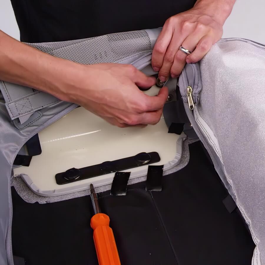 Используя подходящие отвертки, аккуратно снимите все крепежные элементы, соединяющие ручку с чемоданом. Это может включать в себя винты, заклепки или другие типы крепежа.