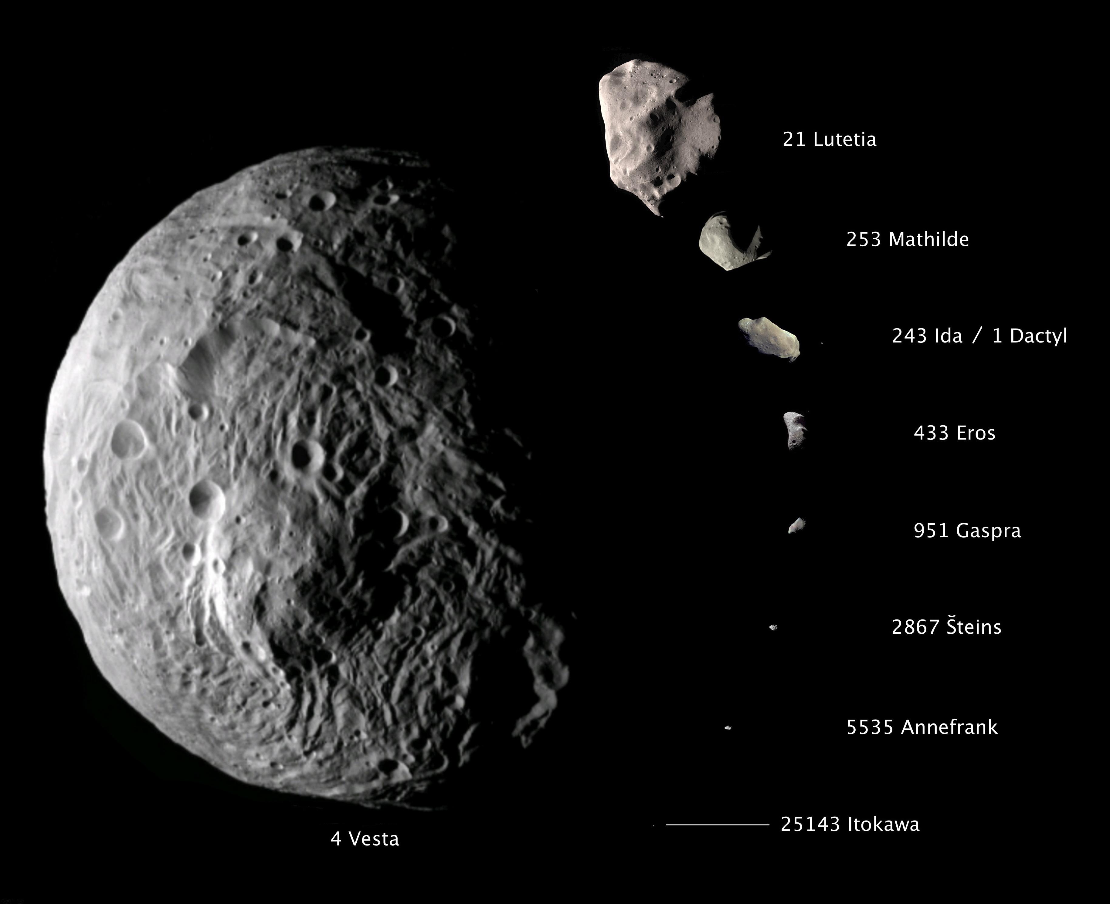 Земные аппараты посетили лишь горстку малых планет. Недавно их список пополнился еще одним объектом. Японская станция «Хаябуса-2» приступила к изучению 900-метрового астероида Рюгу. В честь этого события планетолог Эмили Лакдавалла (Emily Lakdawalla) опубликовала инфографику, на которой представлены сравнительные размеры астероидов и комет, исследовавшихся космическими аппаратами.