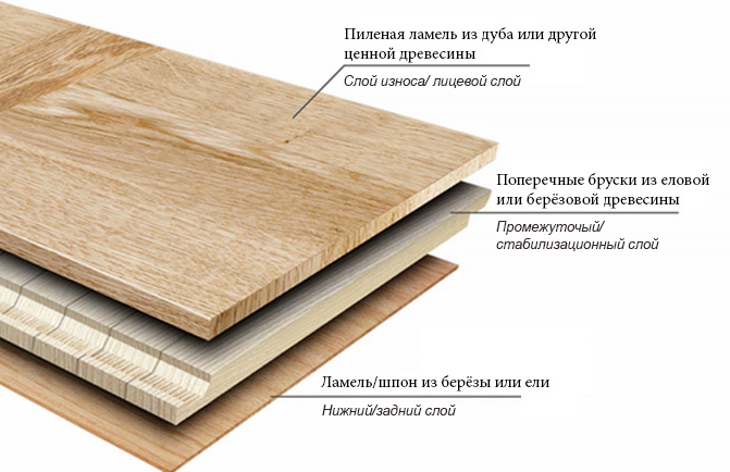 Паркетная доска является многослойной продукцией, верхний слой которой изготавливается из древесины ценных пород и имеет красивый и презентабельный внешний вид, а также высокие технические характеристики. Для максимальной выносливости плашек они покрываются слоем лака для увеличения срока эксплуатации.