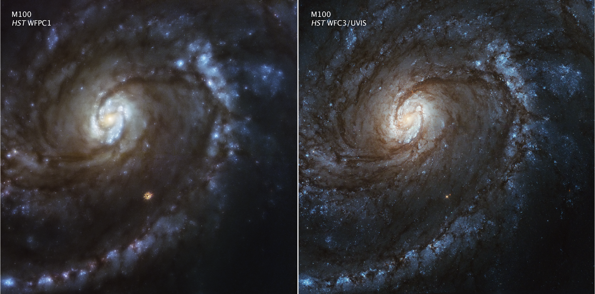 Размытое изображение галактик M100, полученное до ремонта телескопа Hubble, Источник: NASA, ESA, STScI