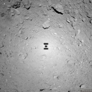 Тень от станции Станция «Хаябуса-2» на поверхности астероида Рюгу. Источник: JAXA/Roman Tkachenko