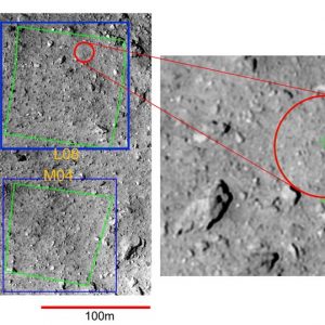 Фотография участка L08-B на поверхности астероида Рюгу. Источник: JAXA, University of Tokyo, Kochi University, Rikkyo University, Nagoya University, Chiba Institute of Technology, Meiji University, University of Aizu, AIST)