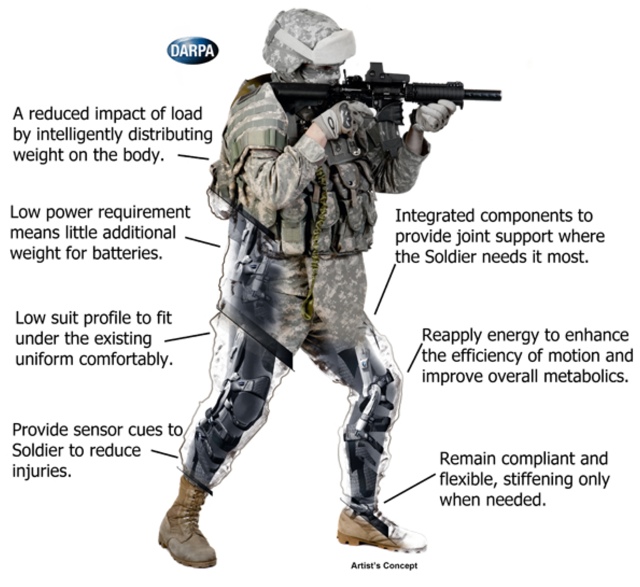 В мае 2013 года на Международной конференции по робототехнике в Германии группой разработчиков во главе с Конором Уолшем из Института Уисса был представлен прототип костюма, который позволяет солдатам становиться сильнее и переносить грузы на большие расстояния.