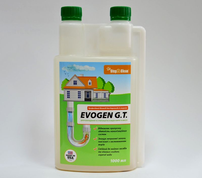 EVOGEN G.T. — це професійний засіб для очищення труб від жирів. Його дія заснована на мікроорганізмах, які виробляють ліпазу — фермент, розчиняючий жири. Переваги EVOGEN G.T. включають: