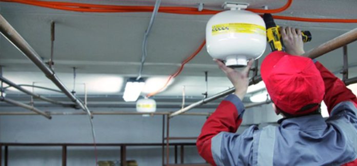 - Спринклерні установки. Включають комплекс розпилювачів з термочутливим елементом. При досягненні температури у приміщенні до певного рівня (57-343 градуси за Цельсієм) активуються розпилювачі, насос починає закачувати воду до місця локалізації вогню.