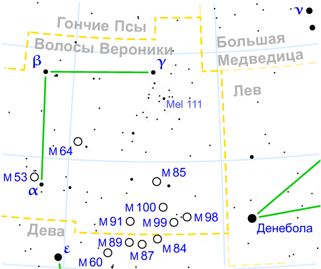 Созвездие Волос Вероники и его основные достопримечательности. Источник: wikimedia.org
