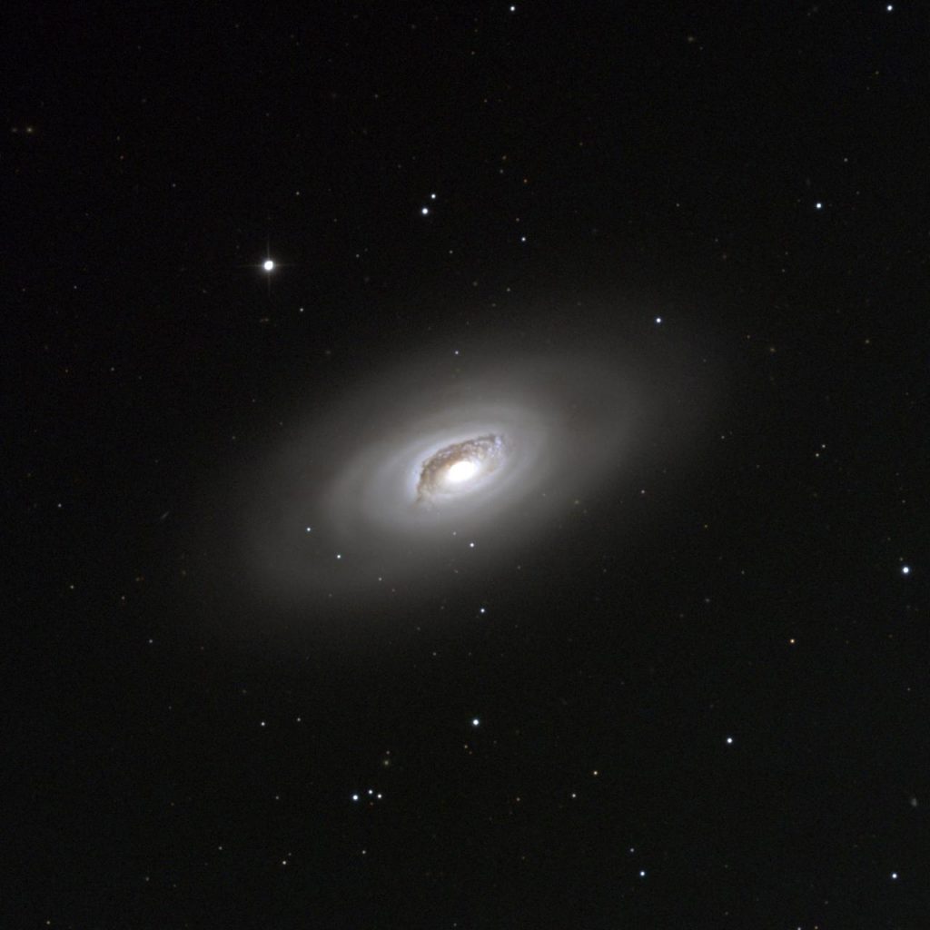Самая яркая галактика созвездия Волос Вероники M64 (8,5m) относится к типу Sb и имеет довольно необычный вид. Мощная полоса темной пылевой материи пересекает туманный овал спиральной системы, поэтому она имеет название «Черный глаз». Причина возникновения этой полосы точно не выяснена. Возможно, она представляет собой остаток другой, меньшей галактики, которая была поглощена M64. Эти предположения подтверждаются и необычностью вращения галактического диска: внутренняя его часть радиусом в 3000 световых лет вращается в одну сторону, а внешняя — в другую (причем во внешних областях направление вращения межзвездного газа противоположно движению звезд, находящихся в этой области). Линейный поперечник галактики близок к 55 тыс. световых лет, на лучших фотографиях галактику можно проследить до угловых размеров 10,1′. Расстояние до нее точно не определено и находится в пределах от 12 до 44 млн световых лет (с наиболее вероятным значением 20 млн световых лет).