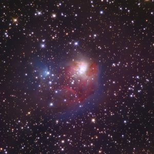 M38 легко обнаруживается даже в слабые телескопы, в инструменты средней силы в нем можно насчитать около 80 звезд. В полуградусе к югу находится еще одно, гораздо более скромное скопление NGC 1907 (8,5m). Его центральная часть, включающая несколько звезд от 10m, занимает область менее 2′ в поперечнике и кажется погруженной в слабую туманность.