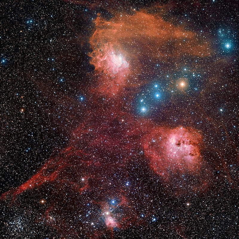 Созвездие Возничего богато не только необычными затменными переменными звездами, но и рассеянными звездными скоплениями. Главные его достопримечательности — скопления M36, M37 и M38, расположенные вдоль линии галактического экватора. Они состоят в основном из горячих белых звезд спектрального класса B с некоторой «примесью» более холодных звезд, напоминающих Солнце. Самое яркое и богатое из них — M37. Расстояние до него, как и до M36, равно 3,5-4 тыс. световых лет, тогда как M38 находится к нам несколько ближе (около 3 тыс. световых лет). Их линейные размеры заключены в пределах от 20 до 35 световых лет.