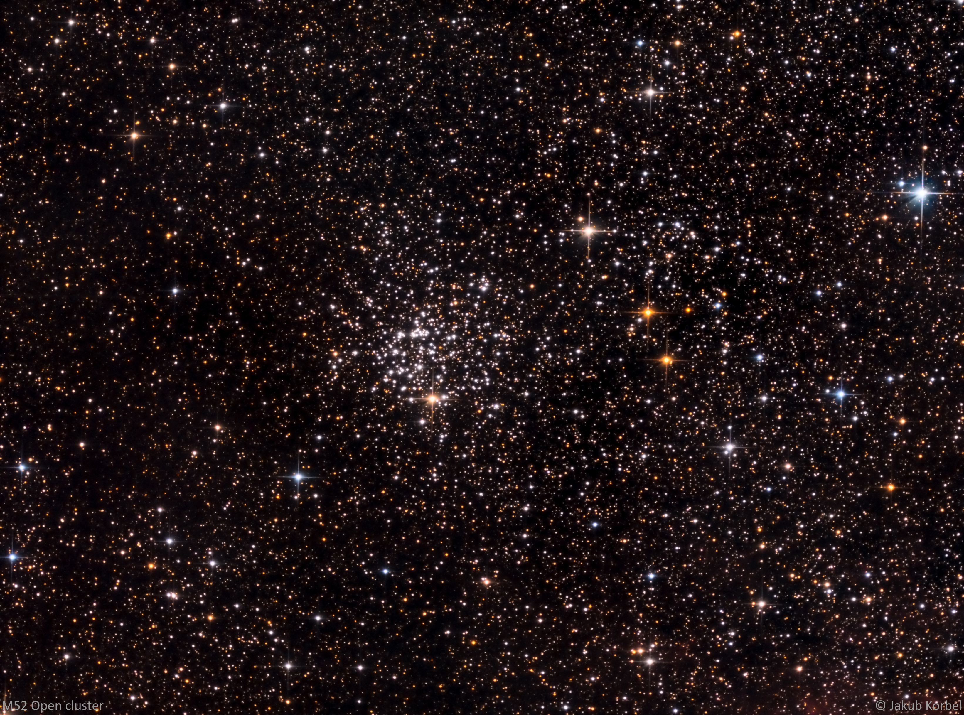 Рассеянное скопление M52 (6,9m) содержит около 200 звезд внутри области диаметром 23 световых года, из них всего несколько десятков имеют блеск выше 12m. Оценки расстояния до скопления находятся в пределах от 1600 до 5200 световых лет. Такая неопределенность связана с межзвездным поглощением света, которое в данном направлении точно не известно. Несмотря на обилие звезд фона, M52 нетрудно найти в полевой бинокль примерно на равном расстоянии от звезд β (бета) Кассиопеи и ι (йота) Цефея, менее чем в градусе южнее оранжевой звезды 4 Кассиопеи (5m).