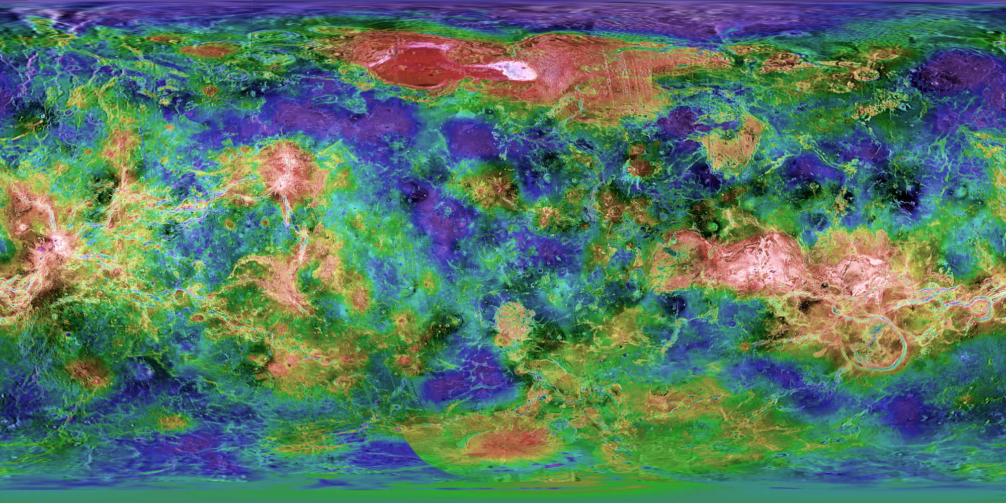 Глобальная топографическая карта Венеры. Источник: NASA